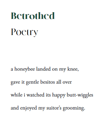 (Yes, the title “Bee-trothed” did cross my mind, but it didn’t fit the tone of the poem