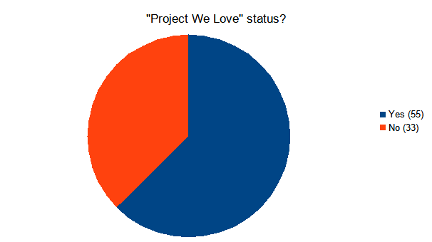 - What was the genre distribution for campaigns to which Kickstarter gave “Project We Love” status?