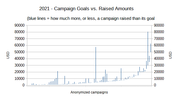 - Highest goal was $25,000.00 more ambitious in 2021 than in 2020. (+200%)